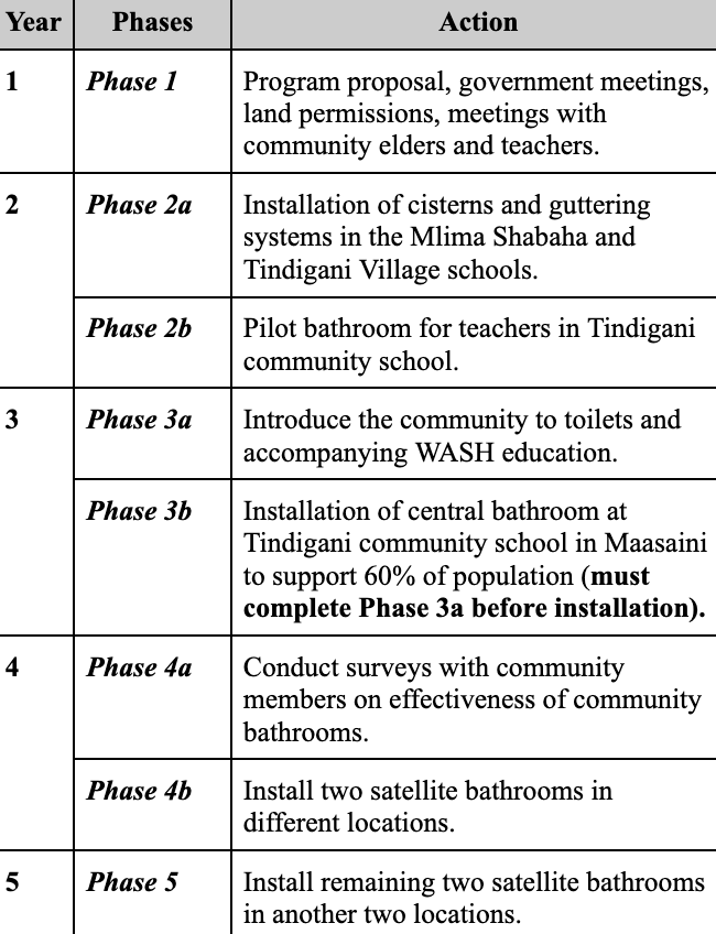 Through a phased four-year construction project, Lalafofofo-Amka Sasa will introduce a public bathrooms system that will serve 2, 200 Maasai community members in order to reduce the transmission of water-borne and fecal-borne illnesses in Tindigani. Tindigani is the most remote and impoverish of our community partners; there is no access to public electricity or sanitation services.